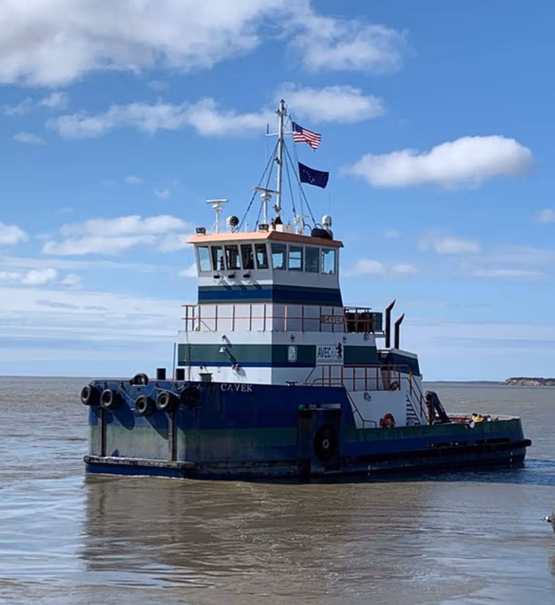 A 164-foot fuel barge named from the Yupik word for “a place or thing to turn to,” serving Western Alaska’s remote communities.